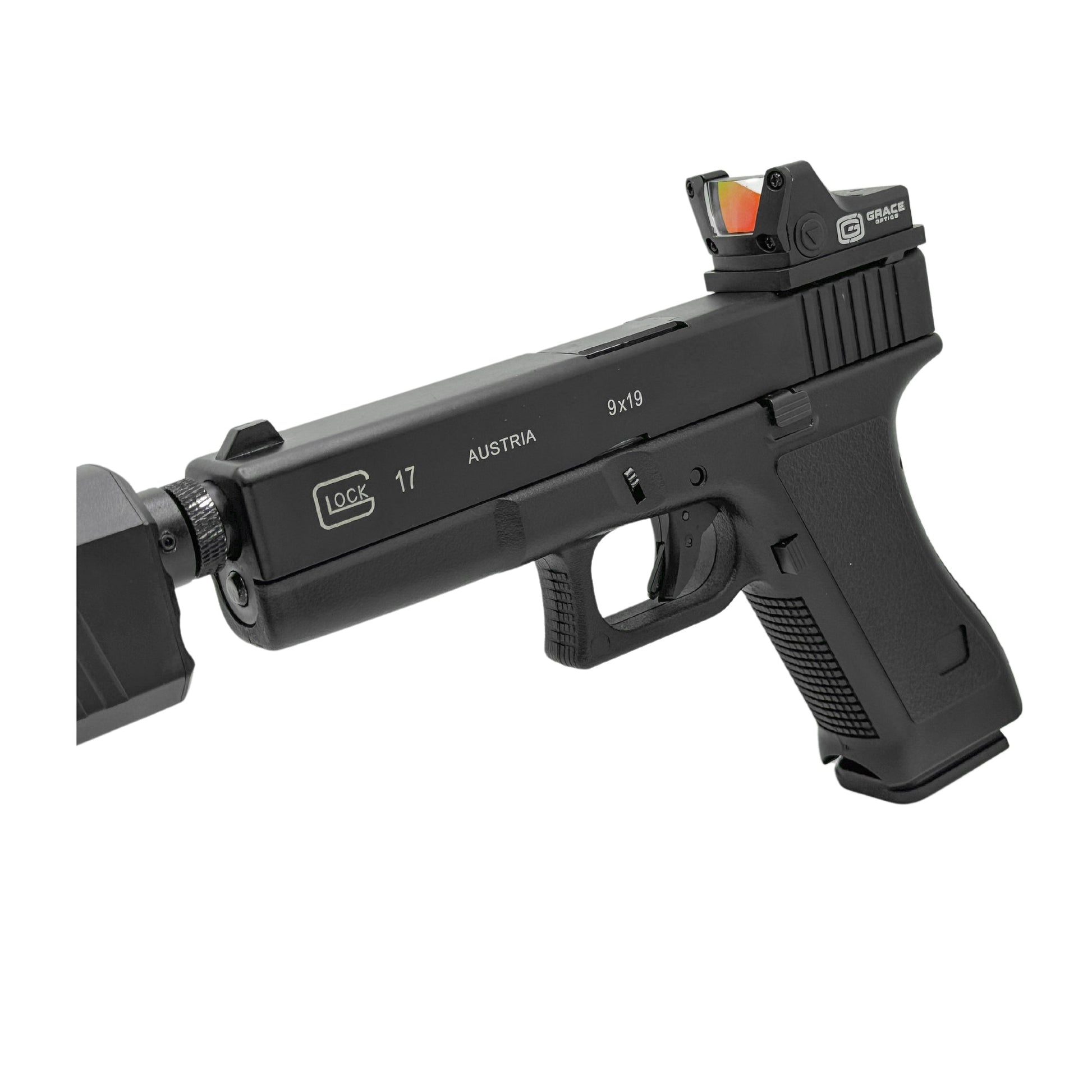 With a fully mounted Grace Optics Red Dot Sight paired with the GBU touch this pistol is ready for battle.