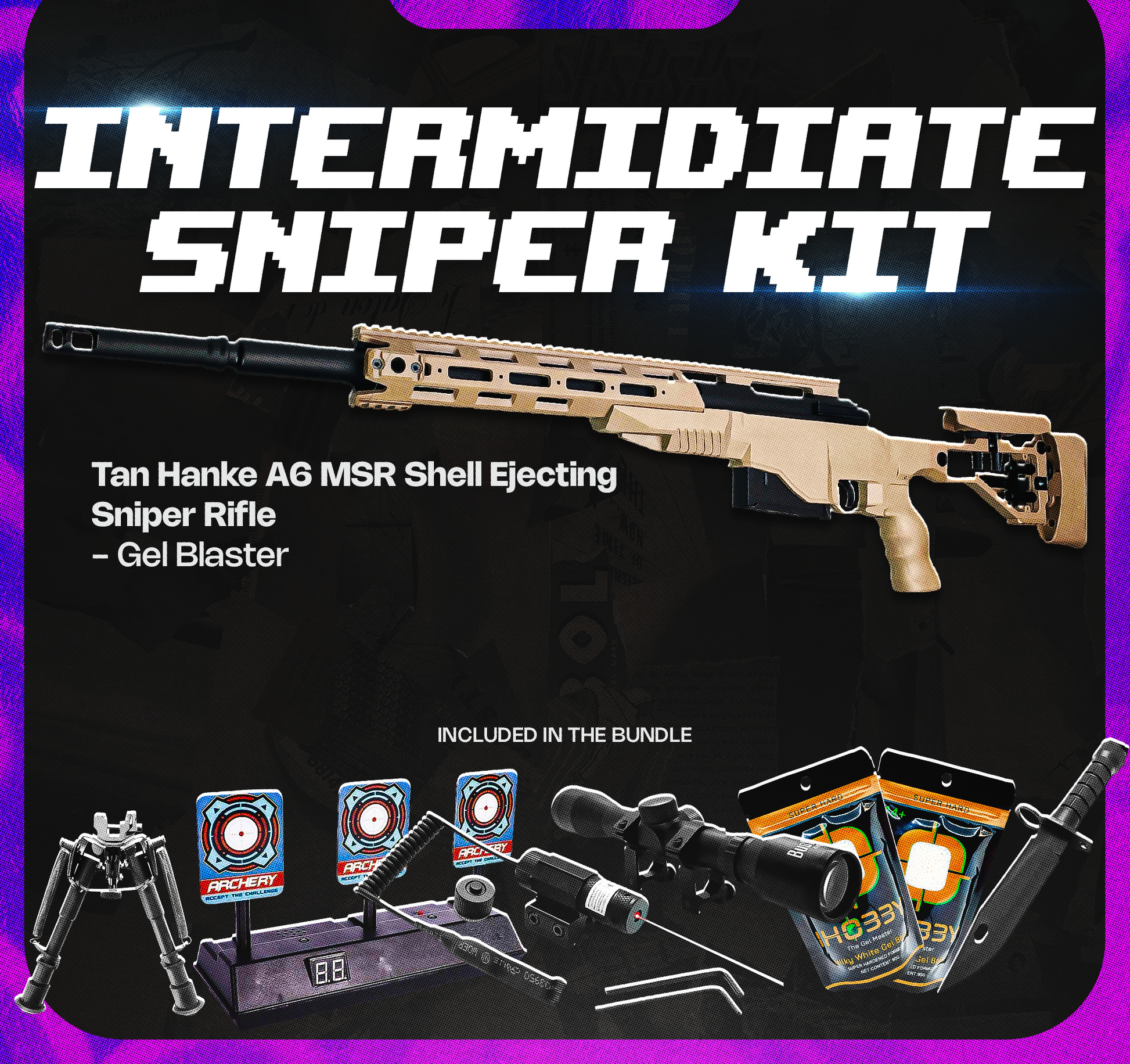 Introducing the Intermediate Tactical Sniper Pack, the ultimate realistic sniping kit on the market, designed to elevate the long-range accuracy gameplay experience for you and your kids. This pack provides interactive, real-life sniping action and is loaded with all the essentials to help you become the most stealth sniper in your group.