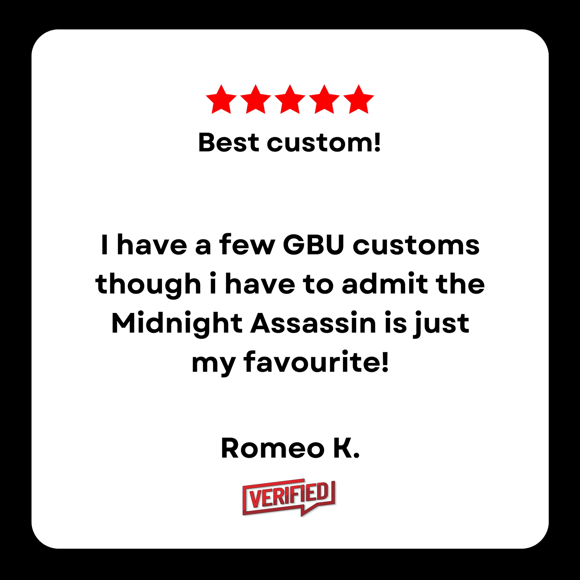 If you are into aggressive, powerful and very accurate then look no further, the custom "Midnight Assassin" is the custom for you!